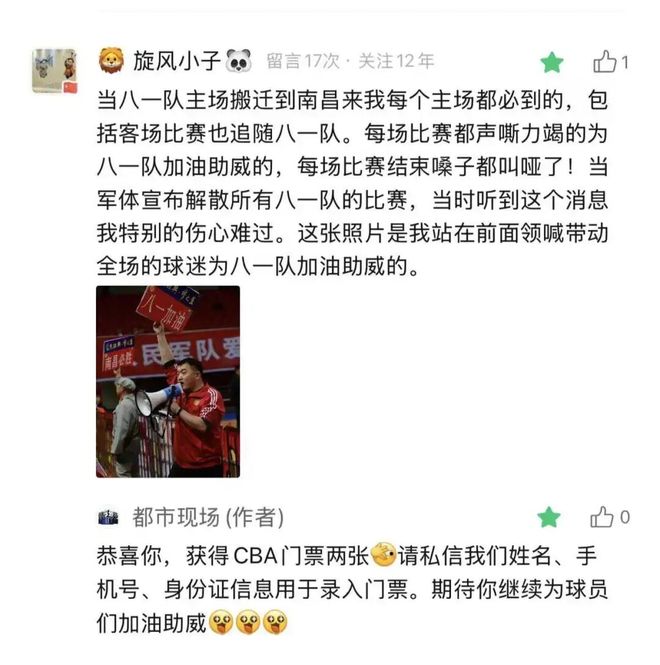 网友因一个故事喜获CBA门票
