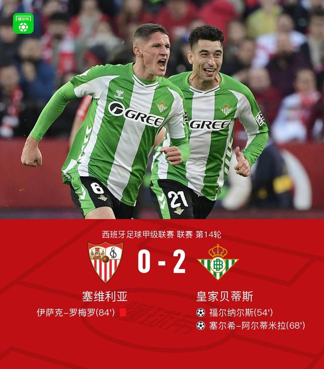 贝蒂斯2-0客胜十人塞维利亚,福尔纳尔斯、阿尔蒂米拉破门